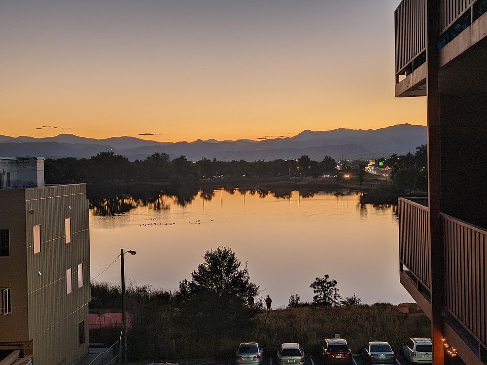 Spectacular lakefront location with mountain views from this 1 bedroom, 1 bathroom unit in Berkeley. Open concept kitchen and living area open to a covered balcony with room for cafe table and chairs to enjoy the sunset over the Rocky Mountains. Large bedroom with cool lighting feature in the wall. Quick access to downtown, the Highlands, Regis University, and vibrant shopping and eating district at 44th and Tennyson. Laundry is available on the even floors and storage lockers can be rented month to month. One reserved parking spot included with plenty of guest parking at the park next door. Minimal expenses as heat, water, and trash are included. The location and views can't be beat! Lease terms are reasonably negotiable based on income. Furniture shown in photos included if wanted. Rent, down payment, and lease duration are reasonably negotiable based on income. No smoking allowed in the unit or on the patio. Heat, trash, and water included. Renter responsible for electric, cable, and internet. Parking spot included.