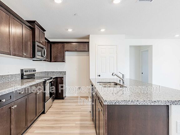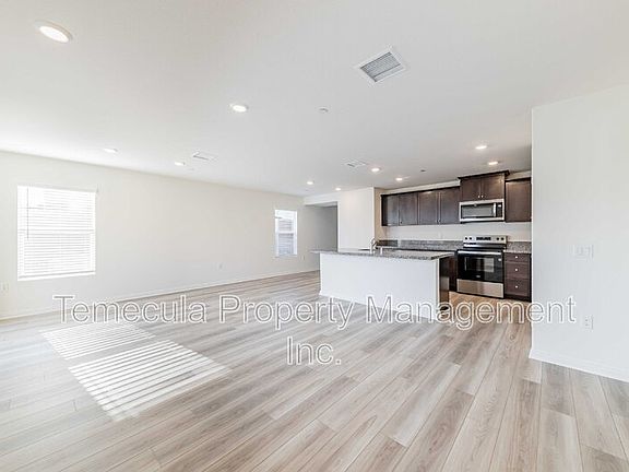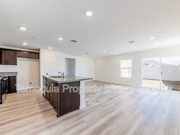 This brand-new 3-bedroom, 2-bathroom home is nestled in the serene neighborhood of Homeland, CA. Just minutes from I-215, this inviting 1,437 sq ft haven boasts three spacious bedrooms, perfect for relaxation and rejuvenation. With two full baths, morning routines become a breeze, offering convenience and privacy for everyone. The open floor plan seamlessly connects the living spaces, creating a warm and welcoming atmosphere for gatherings and everyday living. Natural light pours through well-placed windows, highlighting the home's elegant finishes and creating a bright, airy ambiance. Imagine culinary adventures in the well-appointed kitchen. Located in a tranquil cul-de-sac, this residence offers a peaceful retreat from the hustle and bustle. Nearby amenities and scenic landscapes enhance the allure of this exceptional rental property. Tenant pays $100 per month for the solar system. No tenant fees! Discover a place where comfort meets convenience, making every moment at 30473 Tesoro Ranch Court a cherished memory.