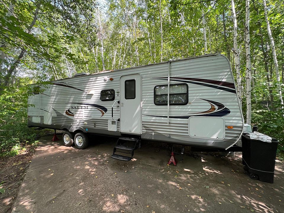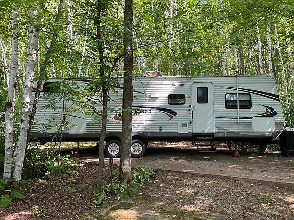 This sweet camping lot setup is all ready for you to come and enjoy for the rest of summer and fall 2023! Super private lot, woods all around, and a camper setup with camper on slab, well and electric onsite, firepit and just you and the animals, birds, frogs and crickets - nature galore here! Located literally 2 1/2 miles from Malmo conveniences - so much to do in this area with dozens of area lakes, trails restaurants, close proximity to state parks, Soo Line Trail, golf and public hunting land! Slab under camper is approx. 32x20.5