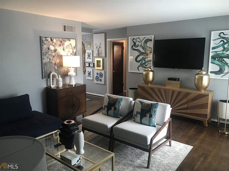 NEW PRICE!! Modern, Mid-century Condo. Freshly painted. Refinished hardwoods thru-out. Living Room/Dining Room combo. Kitchen w/Granite Countertops, SS Appliances and Breakfast Bar. Two balconies - Front balcony for relaxing, Rear balcony has access to dog park/run. Light-filled Bedrooms. Updated Baths. Laundry in the unit. Located near Emory, CDC, Midtown, Buckhead, Brookhaven and MARTA. Great retreat in the City. Quick access to interstates. Good schools.