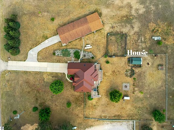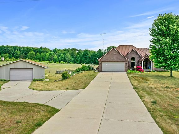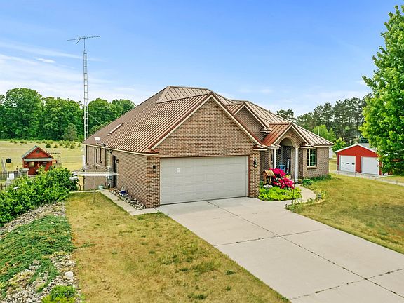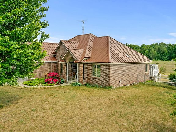 Beautiful executive home and 87'x32' pole barn with workshop that sits on 21 acres. Home belongs to the original owner. 3 bedroom 2 bath on main floor, bedrooms have tray ceilings. Master suite has a separate entrance to the deck, walk-in closet and bathroom with walk-in tile shower and water closet. Main level has a composite floor and tile throughout. Vaulted cedar ceiling in living room, tray ceiling in dining room. Countless windows throughout and easy access to a spacious deck. Kitchen has beautiful ceiling-high cabinets. Walk-out basement features a sauna, crafting room, additional 2 bedrooms and 3/4 bath.