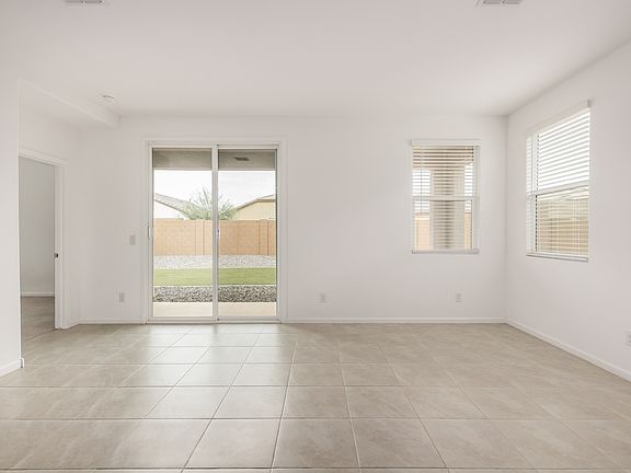 Stunning open-concept home loaded with upgrades, perfect for entertaining! Step into style with soaring 9' ceilings, sleek Shaw ceramic tile floors, and a designer kitchen featuring granite countertops, stainless steel appliances, white cabinets and large kitchen island. Energy-efficient touches include a Wi-Fi programmable thermostat and dual pane, low emissivity windows. The luxurious owner's suite offers a spacious walk-in closet. Enjoy the low-maintenance turf and desert landscaping in the backyard, plus a covered patio for relaxing or hosting guests. Landscape and pest control services are all included! Nestled minutes from scenic hiking trails and breathtaking mountain views. Community perks include a planned lake, parcourse stations, bike loops, shaded play areas, & more! PLEASE CALL/TEXT RACHAEL TO BOOK A TOUR!!