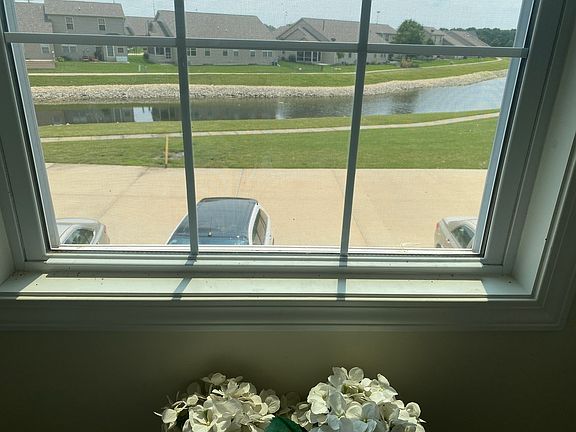Water's Edge Charm! Enjoy the view of the water from this 2nd floor condominium located in Southeast Urbana. Carpeted stairwell to second floor with covered and secure balcony to front door. Formal entryway, hardwood floors through family room with gas fireplace, vaulted ceilings, kitchen and dining nook. Kitchen includes breakfast bar and all appliances. Walk in closets in two bedrooms with two full bathrooms. Spacious in-unit utility room. Split floor plan offers master suite with sliding doors to covered porch. Windows throughout offer plenty of natural light. Attached garage. Close to the University of Illinois and new U of I Atkins Golf Course. Can be sold furnished except for zebra skin rug. Great for bird watching! Available for quick closing. End unit in very safe and private location.