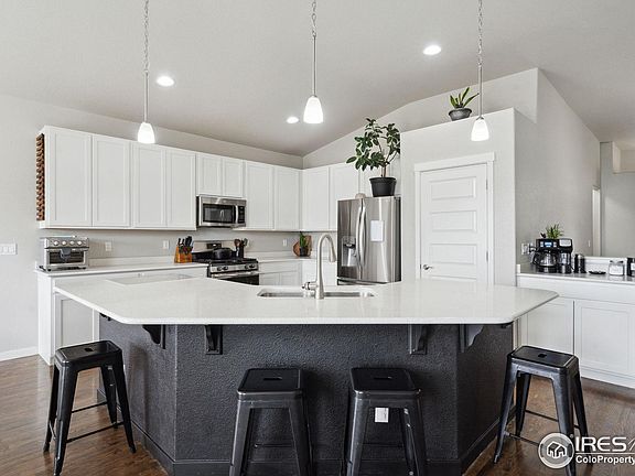 This open floor plan ranch-style home is perfect for entertaining, yet has a recreational (full finished) basement for a nice retreat. Enjoy cooking in the open kitchen boasting classy white cabinets (soft close) with white quartz countertops including a spacious flat top island, complete with a coffee bar area. Cook like a pro with the upgraded gas stainless steel stove. With 5 bedrooms, you can find the convenience of laundry and 3 bedrooms on the main floor, with remaining 2 bedrooms in the basement. Radon passive system is in place for peace of mind. Close to Centerra Shopping Center, yet also close to downtown Loveland. Take some chill time at the neighborhood clubhouse with a pool, hot tub and exercise room. Doesn't back to a neighbor!