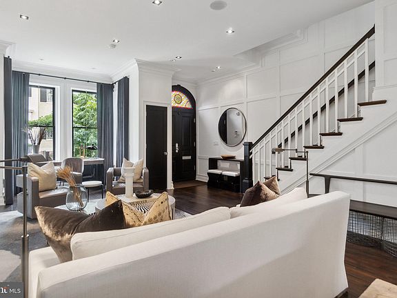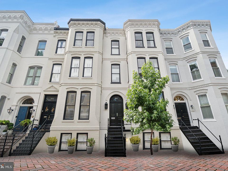 Welcome to this exquisite Georgetown home boasting a wonderfully classic facade and a completely reimagined interior for modern living. This 4 bedroom, 4.5 bathroom property features exceptionally high ceilings and large windows throughout creating the perfect blend of old-world scale and new finishes. Completely renovated top to bottom in 2017 and situated in the heart of the East Village, this prime location offers close proximity to all of Georgetown's great parks, dining options and shopping. Parking will transfer to the new owner (garage rental spot located just two blocks away). The Main level with 10ft ceilings includes an open living/dining area and a state of the art kitchen in the rear overlooking the private garden. The gourmet kitchen features natural light, plentiful cabinet storage, stainless steel appliances and sleek quartz countertops. The Main Level also includes a valuable entry coat closet, designer powder room and custom built-ins. The smart home features hardwood flooring throughout, custom trim & molding, recessed lighting, multi room speakers, nest thermostats and an upgraded internet network system. The Upper Level with 9ft ceilings includes a generous primary suite with marble ensuite bath with dual vanity, soaking tub and lavish shower. A smaller laundry is located on the upper floor next to the primary for ease. The Office/Lounge is complete with wet bar, wine chiller & beverage refrigerator- perfect for relaxing or entertaining on the private balcony which showcases city views of Georgetown and the Washington Monument! Ideal for watching 4th of July fireworks! The top floor, also with 9 ft ceilings, has two more large bedrooms with ensuite bathrooms, both with great custom walk-in closets. The lower level includes a fourth bedroom and full bathroom, dedicated laundry room with utility sink and folding station and most importantly, the light filled Family room with access to the peaceful outdoor garden/patio.