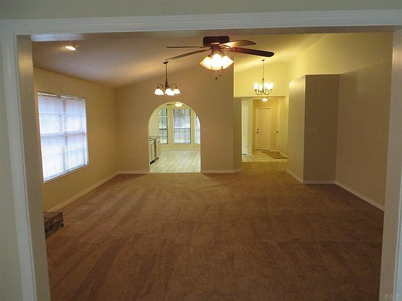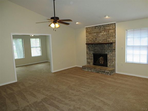 Nice sized brick home in desirable Holley-Navarre. Deeded boat launch into East Bay. Cathedral ceilings in Kitchen, Great Room and Living Room give a feeling of spaciousness. Enjoy the wood burning fireplace with recessed lighting in Great Room and relax in front of the propane burning fireplace in Living Room under double ceiling fans. Jetted tub in Master Bedroom with double vanity. New Carpet throughout. Freshly painted throughout. New whole house intercom and music distribution system. Fenced back yard with storage shed and extra building with electricity, bathroom, shower, and vanity. Screened porch with ceiling fan off Living Room for those cool evenings. New garage door and opener. Easy access to Navarre Beach. Lots of home for the price.