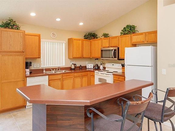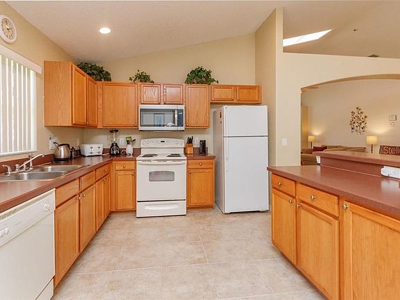 EASY SHOW! Great location FULLY FURNISHED move-in ready 5/4 home for an investment or permanent residence. Skylights make the dining/living room light and bright. The breakfast bar, eat-in kitchen and living/dining room combo makes lots of room for entertaining. Enjoy the solar heated screen enclosed pool and spa with a back up gas heater to heat the spa and pool. Plus a child protective fence for safety or you can just relax in the covered lanai area. Being close to the Four Corners gives one close access to Disney, shopping, restaurants and Margaritaville with a movie theater, water park, Game Time and more enjoyable restaurants. A 243 acre Olympus Sports Center is due to be built nearby creating 5,000 jobs and a 1.4 billion dollar impact on the area.