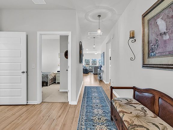 Constructed in 2022 and meticulously maintained, this nearly new single-level residence encompasses three bedrooms, two full bathrooms, and a two-car garage with additional storage, situated on a desirable dead-end street within The Isle of Bella Vita community. This property boasts a scenic pond view, a versatile layout, and numerous upgrades throughout, making it move-in ready and designed for both comfort and contemporary style. Upon arrival, one is welcomed by an inviting front porch accompanied by well-maintained landscaping. A newly installed storm door provides access to the entryway. The two guest bedrooms are conveniently located at the front of the residence and share a full bathroom accessible from the main hallway. The primary suite, characterized by its elegant tray ceiling, includes a spacious walk-in closet and an en-suite bathroom featuring a large, tiled, glass-enclosed shower. Abundant windows in the primary bedroom and the main living area allow for natural light and provide a picturesque view of the pond at the rear of the property. The upgraded kitchen features white cabinetry, high-quality quartz countertops, stainless steel appliances, a walk-in pantry, and an oversized center island. Luxury vinyl plank flooring extends throughout the primary living areas, including several of the bedrooms. The home is fitted with fifteen window blinds and ceiling fans installed in each room, as well as both porches. Additionally, new lighting fixtures have been incorporated in the central hallway and above the kitchen island, enhancing the home's open-concept design. Located just beyond the main living area, the extra-large extended screened-in back porch creates a pleasant atmosphere, particularly during warm summer days. This property reflects a significant pride of ownership. It includes various features that simplify the purchasing process, such as a tankless water heater, gutters, a landscaped yard with white stone, an automatic irrigation system, and a finished and painted garage with pull-down stairs for attic access, providing extra storage space. The attic also contains essential items for hurricane protection. Set within a natural gas community that imposes a low homeowners' association fee, which includes access to a pool and cabana, The Isle of Bella Vita offers a prime location just minutes from shopping, dining, championship golf courses, and highly rated educational institutions. Myrtle Beach International Airport and local beaches are located approximately 15 minutes away.