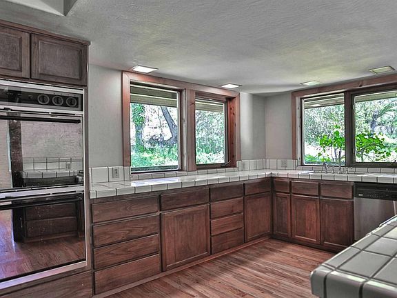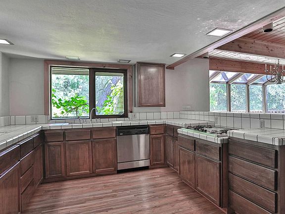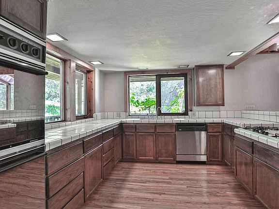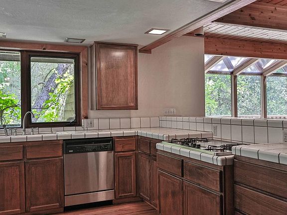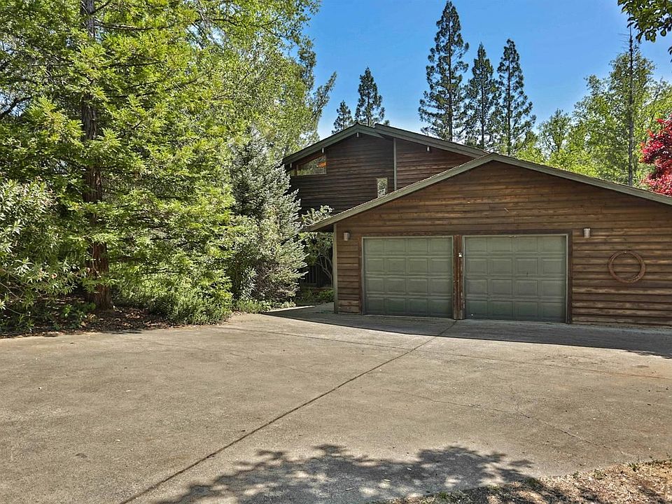 Come home to this charming cabin style home nestled amongst towering pines. This custom 2208sf home showcases vaulted wood paneled ceilings, cozy wood stove and large picture windows overlooking the tranquil setting. Light and bright tile kitchen features a dining bar and sunny window breakfast nook. Upstairs, open loft area would make the perfect office area or third bedroom. Downstairs has a large living space with separate entrance that could be guest quarters. Kick back and relax out on the spacious deck or patio under the gorgeous shade trees. All set on 5+ acres featuring a koi pond, sparkling pool, horseshoe pit, lush lawn area and small horse shelter with fenced paddock area. Enjoy being close to Hwy 50 and other major conveniences.