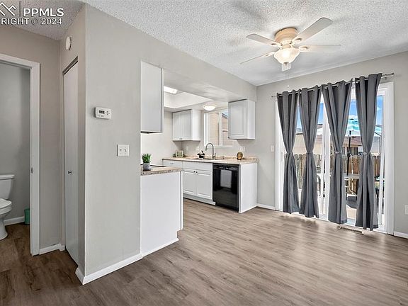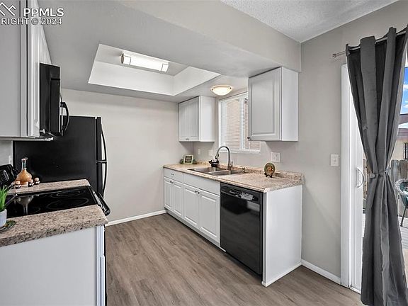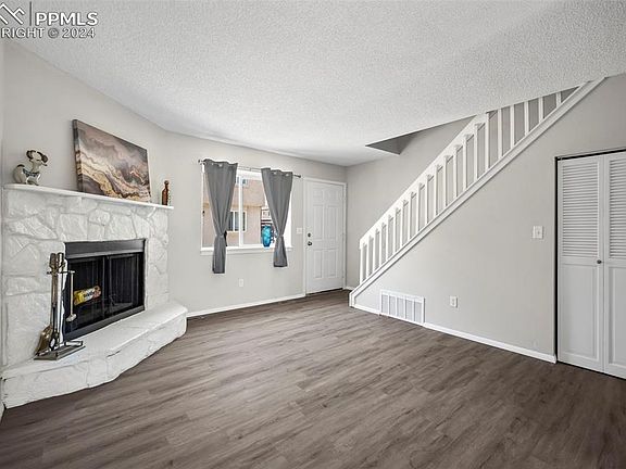 Remodeled and ready to go, this move-in ready townhome features brand new paint and flooring, as well as newer windows, kitchen cabinets/appliances and so much more!**Step outside to your own private fenced-in yard to soak in some incredible mountain views with your morning coffee**Inside the home, you'll find a spacious living room complete with a corner wood-burning fireplace, the dining room overlooking those mountain views, and the updated kitchen with updated cabinets, countertops and appliances**The entire main level features brand new paint and luxury vinyl plank flooring!**Upstairs, you'll find two spacious bedrooms, one of which boasts a spacious walk-in closet, and an updated bathroom**The upper level also features a laundry area with a washer/dryer that will stay with the unit, so no more lugging clothes up and down stairs!**If you are looking for a move-in ready townhome in Colorado Springs with great mountain views, look no further, schedule your showing today!