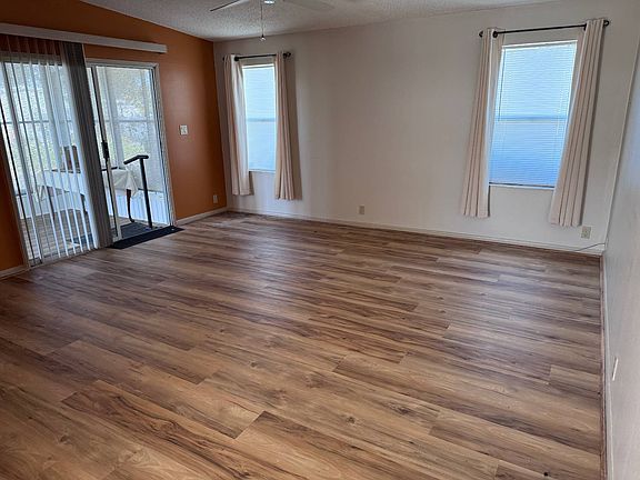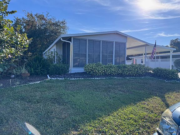 Beautiful, Move-In Ready Home in a Premier 55+ Community This charming 2-bedroom, 2-bath home is truly move-in ready and located in one of the area's most desirable 55+ communities. As you arrive, you'll notice the freshly painted driveway, attractive landscaping, and an additional parking space perfect for your golf cart. Inside, the home opens to a spacious living room with plenty of room for all your furniture and a large TV. Double glass doors lead to a bright and inviting Florida room, complete with its own separate air conditioner - ideal for relaxing year-round. The living area flows seamlessly into the dining room, which comfortably accommodates a larger table and chair set. Adjacent is a well-designed kitchen featuring ample cabinet storage, generous counter space for small appliances, a stainless double sink, and well-maintained major appliances ready for everyday use. The guest bathroom offers an updated, oversized walk-in shower. The guest bedroom provides plenty of space for a queen bed, dresser, or sitting area, along with a double closet. The main bedroom is impressively large, with space for a king bed, dresser, large TV, and a cozy sitting area. A private bathroom includes a step-in shower and a walk-in closet. Outside, you'll find a large carport with an attached storage and laundry room equipped with a washer and dryer. This home also includes: New roof New air conditioner Vinyl-style flooring throughout The community offers excellent amenities, including: Two pools (one heated) Golf Shuffleboard Tennis Lawn care Cable and irrigation Garbage and trash pickup Conveniently located near restaurants, shopping, beaches, and major routes to all Central Florida attractions, this home offers everything you need to enjoy the great Florida lifestyle at a fantastic price.