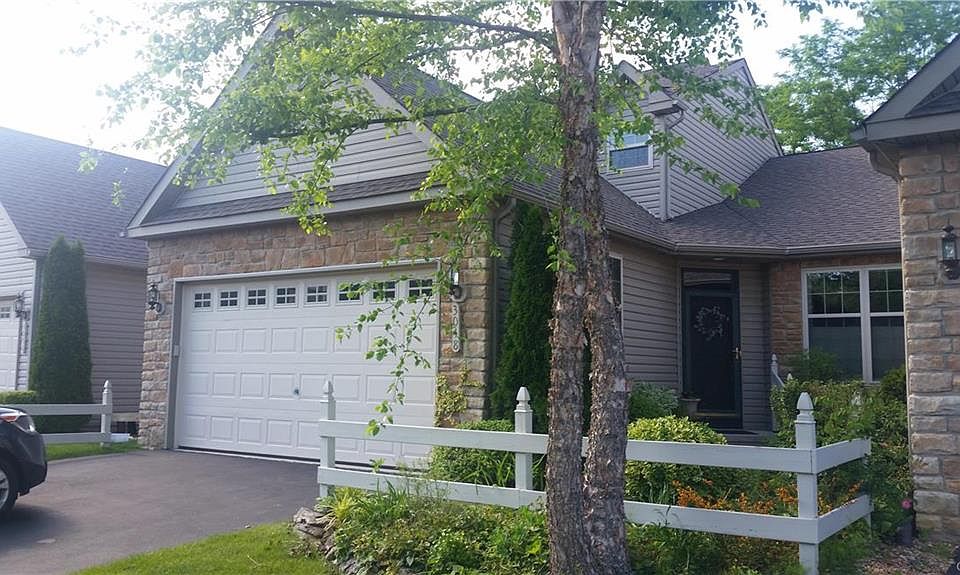 Located in a cozy enclave of townhomes in Center Valley, conveniently located with easy access to major highways including Rt 78 and Rt 33, shopping and dining at the Promenade, and all else the Lehigh Valley has to offer, this energy efficient, recently updated middle unit has it all: enjoy peace and quiet on the deck and view the green and lush back yard with Saucon creek and nature trail beyond; cook in the recently updated kitchen with its granite counters, tile back splash, and new appliances. The first floor master suite is complete with walk in closets plus a fabulous bath with a granite double sink vanity, tub, and new oversize shower. With a custom gas fireplace, the two-story family room provides a fine focal point for entertaining. Along with plenty of storage space, the second floor has two bedrooms both have large walk-ins, full bath, plus loft area that can be used for guests. HOA is $75/mo, and a security system is available for an additional $30/mo.