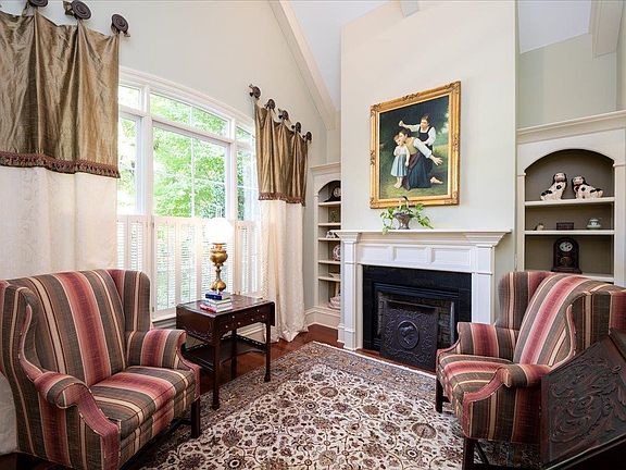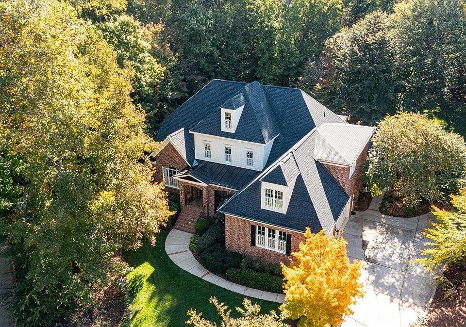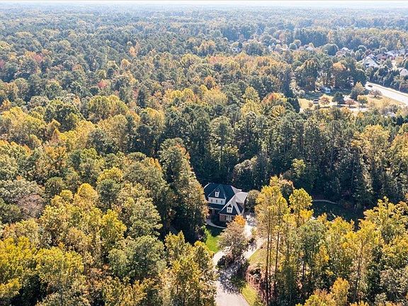 Retreat to this private estate in Raleigh with no city taxes! Convenient to highly rated schools and both Cary and Raleigh recreation and entertainment, you'll always have fun things to do. Perched on a wooded, manicured lot in a cul-de-sac, this property has both outdoor and indoor spaces for everyone, and each is equipped with high-end trim work and details. New roof 2021, upstairs HVAC 2022. First level has hardwoods, formal dining room, office/study with cathedral ceiling, butler pantry w/wine cooler, Viking stove with pot filler, walk-in pantry, granite counters, abundance of cabinets, breakfast room overlooking backyard and screened porch. Primary bedroom with tray ceilings and ensuite , two closets and direct access to back patio with brick fireplace. An oversized three-car garage with cabinets and extra space. Oversized laundry room on main level. Upstairs you'll find 3 additional bedrooms, 2 full bathrooms, a second floor living room with fireplace and wetbar, built-ins and wet bar, a theater room and an additional flex space that could be anything from a workout room to a playroom. Feature sheet avail.