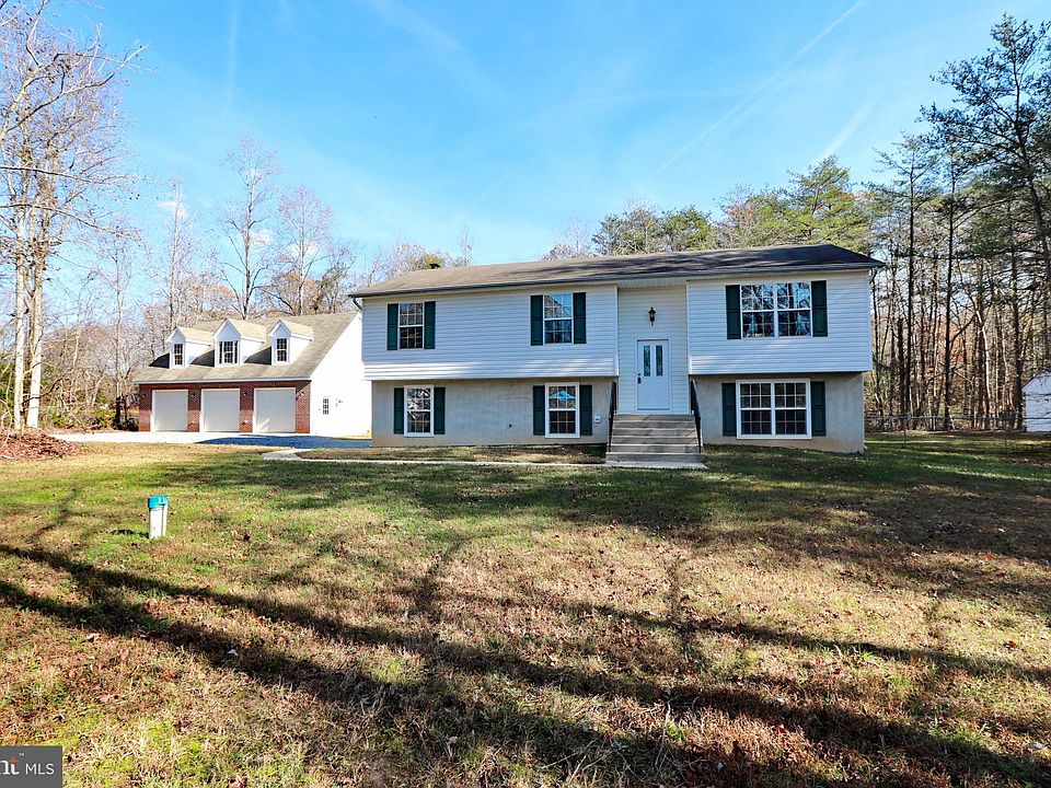 Large split-foyer with 5 bedrooms and 3 full bathrooms on over 3.5 acres of land with a partially fenced-in back yard. The large 3-car detached garage has its own heat and air condition with a new stairway leading up to the unfinished area above the garage with endless possibilities for use and has water rough-in. The house has a newer HVAC system and new appliances in the kitchen. The lower level has new carpet in the family room and has been freshly painted. No HOA. Located minutes away from Route 5, restaurants, shopping, and other conveniences.