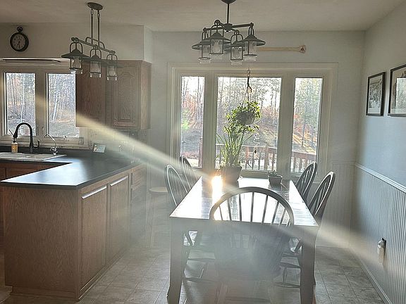 Rambler style home on a beautiful open lot with pond and tons of wildlife. Central Air. Heating Forced air and fireplace. Chicken coop, closed in lean-to and garden house also on the property. Fenced in area for horse. Land boarders timber company site. 3 stall heated garage set up with propane and heat. Sauna room turned into tack room. Large deck of back of the house. Main floor has three bedrooms, livingroom, recreation room, kitchen, dining and laundry. Basement finished with bedroom, recreation room, utility room and storage room. Basketball hoop. Laundry line. Sledding hill and pond to skate on with right equipment. The 6 total acres is a 4.86 acre lot and a 1.14 acre lot attached.