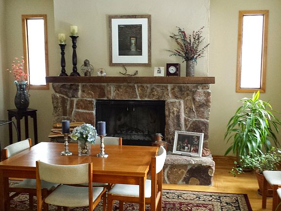 Hiwan energy efficient home with convenient access. 100% solar electricity, new high efficiency furnace with supplemental wood stove heat, and all new attic insulation. Nicely separated spaces with 3br/1ba on top floor, main-floor master, eat-in kitchen, formal dining room and living room, and downstairs theater/rec room and large bedroom/office. New deck off master bedroom. Bubbling fountain next to new front entryway. Large lot with lots of off-street parking.