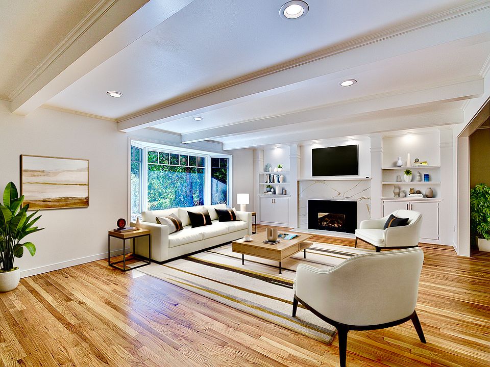 Experience refined Eastside living in this 3,000 sq. ft., 5-bedroom, 3.5-bath modern farmhouse, beautifully reimagined inside and out and set on a private, flat, and fully fenced 1.15 -acre lot. Perfect for relocating tech executives, this home combines timeless architectural charm with high-end modern updates. A gourmet kitchen with alder cabinetry, slab granite counters, and stainless appliances flows into expansive living spaces highlighted by a quartz-wrapped fireplace, box-beam ceilings, and sliders to a private paver patio with fire pit.