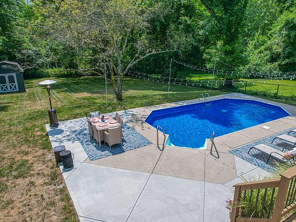 Welcome to your private oasis on over half an acre, featuring 3 bedrooms and 2 full baths. The oversized driveway leads to a 2-car garage, while inside you'll find a light-filled living area perfect for everyday comfort. The main living area boasts an open floor plan with vaulted ceilings. The kitchen is equipped with stainless steel appliances and granite countertops. Step outside to discover a two-tier deck ideal for summer gatherings or quiet mornings with coffee. Take a dip in the inground pool and relax on the extended patio. Brand new AC/Heat Pump, roof replaced in 2022, hot water heater replaced in 2017.