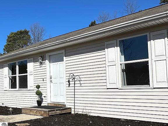 Welcome home to this spotless and ready-to-go adorable 3-bedroom/1-bath ranch with a 2-car garage! Great floorplan with vaulted ceilings make this home the one you've been waiting for! Situated in a friendly neighborhood with municipal water and gas, this charming home features a blacktop driveway for easy maintenance. Enjoy main floor living in this over 1,000 sq. feet finished main level and an additional 1,000 unfinished (but tidy) full basement with washer/dryer included. The primary bedroom boasts a built-in closet organizer for added convenience. This home has been immaculately maintained and offers a spacious backyard which is partially fenced for privacy. A storage/garden shed with a skylight provides extra space for all your outdoor needs. The property is neatly landscaped and move-in ready. As a bonus, an extra freezer, snow blower, and AC unit are yours to keep! This well-kept, affordable home is available for immediate possession. Crimson Ranch Lane is a private road with an annual $295 HOA fee covering road maintenance and snow removal. It is just 10 miles to Munson Medical Center, 7 miles south of the Grand Traverse Mall, 3 miles to grocery, and 3 miles to Blair Community Township Park, which has three baseball fields, a tennis court, a basketball court, a .75-mile walking path, a splash pad, a playground, public restrooms, a picnic pavilion, and a disc golf course. Perfect for 1st time home buyers or those wanting main-floor living. Dog-friendly neighborhood. Taxes are non-homestead and will be substantially lower for a homestead.