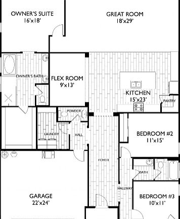 Contemporary Elevation, Tile in Great Room, Granite Countertops, Stainless and Glass Vent Hood, Wall Oven and Gas Cooktop and Blinds Throughout!