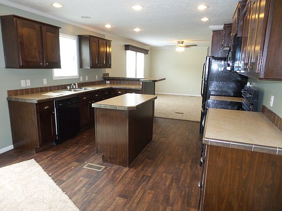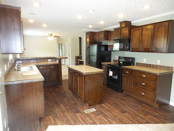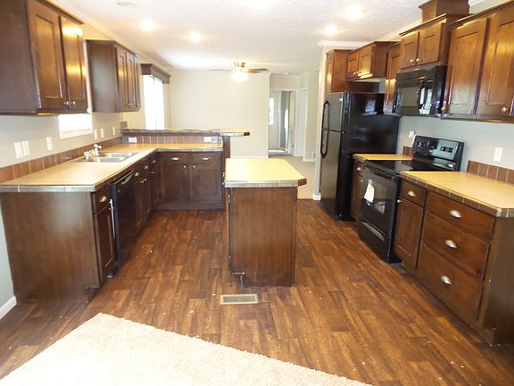 Amazing foreclosure on almost 1 acre with new carpet, paint and appliances, large open floor plan with split bedroom design, eat in kitchen with center island, bar and breakfast nook. Wood style vinyl in kitchen and bathrooms. Living room and den with built in entertainment center. Large master bedroom with huge walk in closet and large master bathroom with jetted tub, double vanities and walk in shower. 4 additional guest rooms and additional bathroom. Huge mud room with laundry sink and shelving. Large front deck looks over gently rolling land. All this at end of road privacy.