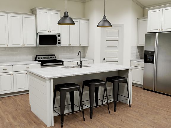 Another gorgeous home built by Sidar Builders! The home boasts an open kitchen with custom cabinets, granite countertops, stainless appliances, faux wood blinds, and pendant lighting. Open living/family room, abundant natural light, vinyl wood plank flooring, and oversized covered patio. Primary suite with crown molding and large windows that provide ample natural light. Primary bath with large shower, soaking tub, granite vanity, and large walk-in closet with built-in shelves. Three other bedrooms with ample closet space and built-in storage share 2nd full bath with granite vanity and tub/shower combo. The home also has a half-bath with granite vanity. Home features sprinkler system, privacy fence, and vinyl Low-E windows.