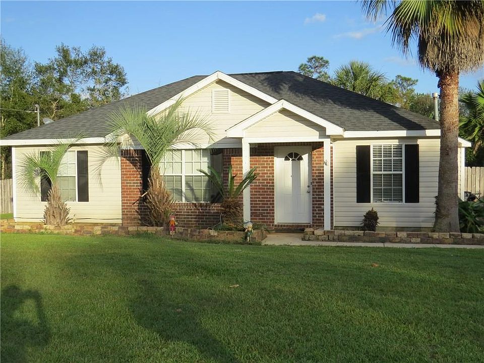 Welcome to 3049 Scarlet Oak Dr. No money down USDA eligible if qualified. Large open floor plan with gas log fireplace& ceramic flooring in Den open to big kitchen with breakfast bar & eat in area. Dishwasher and stove were replaced less than 1 yrs ago and cabinets have been restained beautifully. All bedrooms are extra roomy with laminate flooring thruout. This home boast a backyard larger than most in this neighborhood and lot extends well beyond the current fence. Pretty palm trees add shade and character to enjoy the large patio out back. New roof in 2016! For those with little ones will enjoy the neighborhood playground.