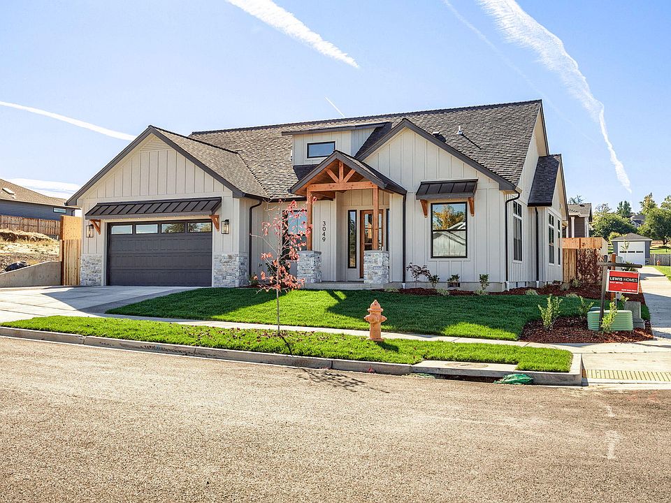 Stunning brand new custom-built home located in a desirable East Medford neighborhood. This energy efficient home features an open concept, 4 bedrooms, 2.5 bathrooms, high ceilings, beautiful finishes, European White Oak hardwood floors throughout, and abundant natural lighting. Great living room with a gas fireplace and large glass sliding door. Gourmet kitchen boasts Cafe appliances, Rift Sawn White Oak cabinets, eating bar, quartz countertops, tile backsplash, gas range/oven & walk-in pantry. Primary suite offers a light ceiling fan w/coffered ceiling, attached bathroom with quartz countertops, tile floors, double sinks, tile shower, soaking tub & walk-in closet. Separate utility room offers tons of cabinets and a sink. High efficiency HVAC, upgraded insulation in the walls, subfloors, & attic. Great backyard offers a large covered patio, landscaping with an automatic sprinkler system and fencing. Finished 2 car garage. Great location near dog park, pickleball courts, & more.