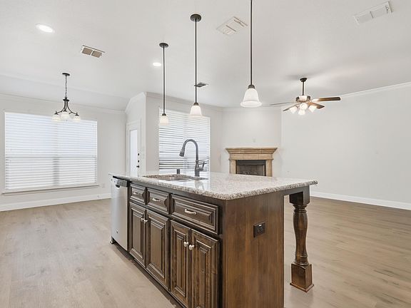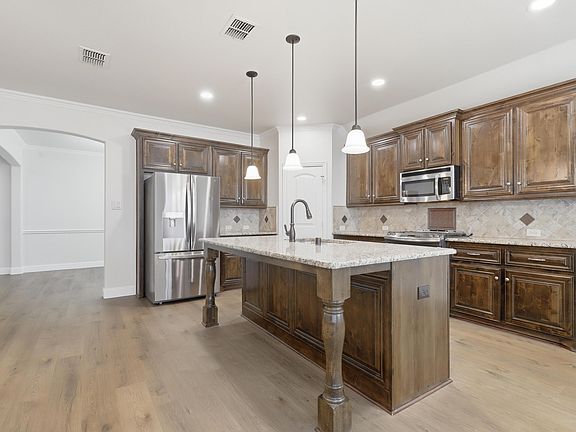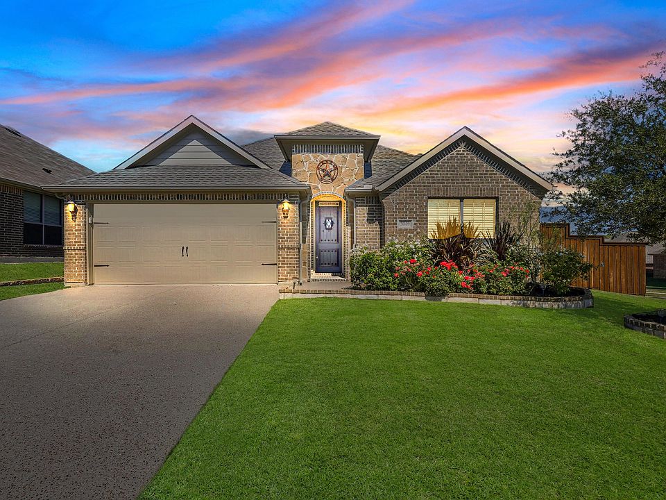 Tastefully renovated custom home on corner lot! This beautifully updated 3-bedroom, 2-bath home features an open, airy layout with high ceilings and brand-new luxury vinyl plank flooring throughout. The modern kitchen shines with granite countertops, stainless steel appliances, a gas cooktop, and a seamless connection to the spacious living area with corner fireplace. A versatile second living space is ideal as a formal dining room, home office, or flex room. The primary suite offers a peaceful retreat with an updated en-suite bathroom, while two additional bedrooms provide ample space for guests, children, or a home gym. Fresh paint, updated light fixtures, and abundant natural light create a move-in-ready atmosphere. Step outside to a generous backyard perfect for entertaining or relaxing, with mature landscaping and a covered patio. Enjoy convenient access to community parks, pools, walking trails, top-rated Northwest ISD schools, shopping, dining, and major highways including I-35W and Highway 114. Refrigerator, washer, and dryer are all included for your convenience schedule your showing today!