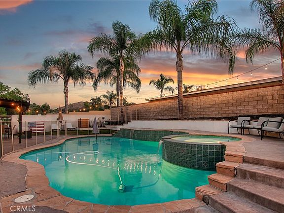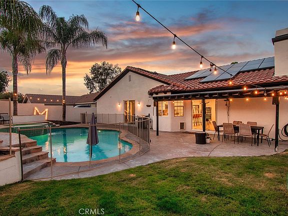 The truly private back yard spares little in amenities including a large pool with jacuzzi, stamped and stained concrete, patio cover and grass area.