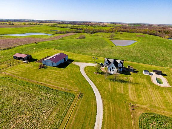 This 2600 sq. ft. 1½ story home is located 8 miles east of Bethany on Hwy. 136. The home was strategically placed on the property with a long driveway that gives the home a picturesque view from the highway. The home consist of an open 20x24 living room, 14x15 dining room and 14x14 kitchen. It has a 15x15 master bedroom and 12x10 master bath with jetted tub, shower and large closet. Also on main level is a laundry nook and a half bath. The second floor has two bedrooms that measure 21x16 and 14x18, a 6x9 bathroom, large linen closet, and 20x18 loft area. This home has a full unfinished basement with a walkout garage door for easy access and extra storage. It is set up with plumbing for a bathroom and has a 20x24 area for a family room. There's also a 30x14 area that could be finished. The home has a forced air heat/cooling system, propane furnace, and an outside wood furnace. The home has a 22x26 attached garage, and 16x21 deck. The deck overlooks the 1 acre pond and you have a great view of the deer and turkey on the food plot on the back side of the property. There is a 15'x33' in ground swimming pool with a concrete surround and a covered shelter. The farm consists of 45 acres m/l with 33.7 acres in CRP paying $135.13 per acre for an annual payment of $4,553 for the next 7 years. There are two pole sheds. One is a 48'x75' Morton building and the other is a 30'x50' building with an attached 50'x100' all metal corral. This property is located in the South Harrison school district. It's only 1 1/2 hours from both Kansas City, MO and Des Moines, IA. If you're looking for a quiet country setting, this is the home for you.