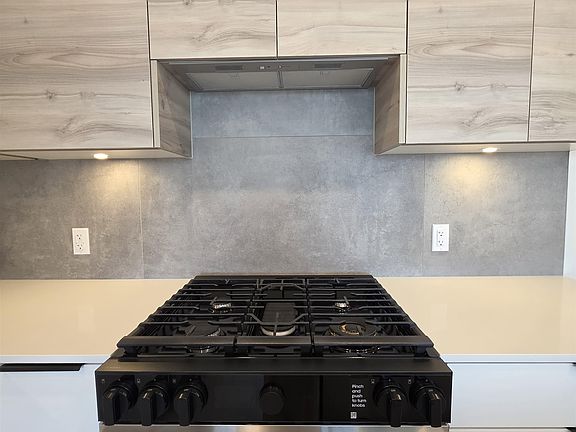 Abundant natural lightStainless steel appliancesOpen layoutLarge windowsModern kitchenQuartz countertopsAmple cabinet space