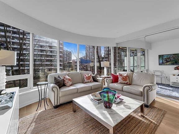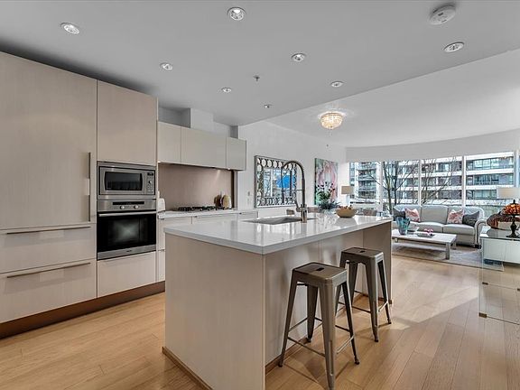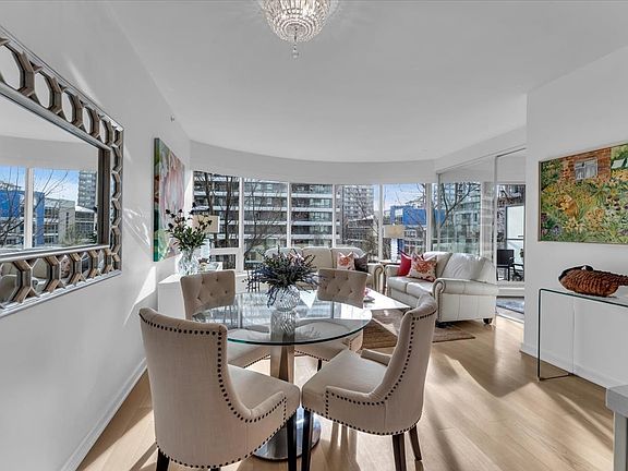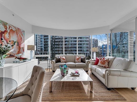 Experience urban elegance in our 868 sqft, 1 bed + den/solarium suite in Sails, boasting high-end appliances, 9-ft ceilings, and a spa like bathroom with dual sinks, tub and shower. Enjoy a patio, same-floor gym, courtyard, party room, BBQ, and WiFi, plus blooming privacy, serene park views, and Science World vistas. No elevator needed. Ideally located for skytrain, aquabus, and seawall access. Features include a BBQ deck, light-white decor/finishing, and large windows boasting views and morning light. To top it all off, your home includes access to the Gold Medal Club with pool, sauna, hot tub and gym. Within seconds to London Drugs, Craft Urban Fare and everything Olympic Village has to offer for your ultimate convenience.