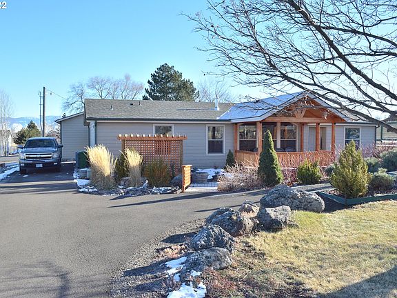 Don't miss this unique property! Located on a quarter acre Southside lot with views, this home boasts character. Enjoy the landscaping, covered front and back patios, and a heated finished detached garage plenty large enough for extras and projects. This 2017 home has many extras, to include upgraded insulation, vinyl floors, quartz countertops, and a tiled walk-in shower. Enjoy the vaulted ceilings, sunset views, and cozy fireplace. Come see this custom property today!