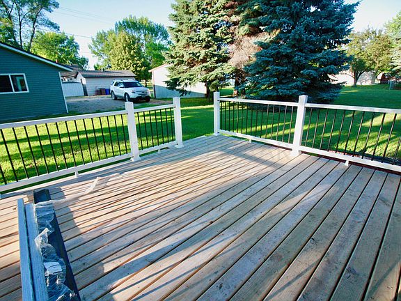 Comfort..classy...move-in ready home in Hankinson. This seller has taken this 3 bedroom, 1 bath home and turned it into a comfortable, efficient home you wont want to leave. Enjoy a drink on your large deck or prepare to entertain in your 3 stall new garage, partially finished with insulation to finish it off. This steel sided home has ABC windows, new central air, appliances, brand new white kitchen, flooring, led lighting, and so many improvements to mention. Upstairs master is large, with walk-in closet, as well as the large spare bedroom. Owner has reasonable bid to put in a second bath upstairs. Owner will have the new steel siding finished for closing.