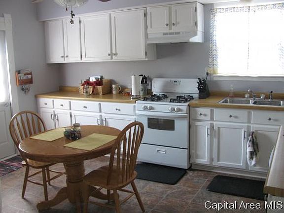 Cute & Clean, updated, well maint bungalow between Springfield & Decatur. 20 Min to either city. NEW ROOF! Nice windows. Furn & AC new in 07. New window coverings stay! Entire interior has been freshly painted. New flooring in the LG kitchen w lots of pretty white cabinets & appliances that stay. Bright, clean utility room off the kitchen boasts a LARGE pantry. 4th bedroom currently being used as an office. Fenced yard, 2.5 C garage. Front porch & back deck! Location qualifies for NO MONEY DOWN LOAN PROGRAM! Pre-inspected twice w repairs made! Selling AS IS! GREAT CONDITION!!!!