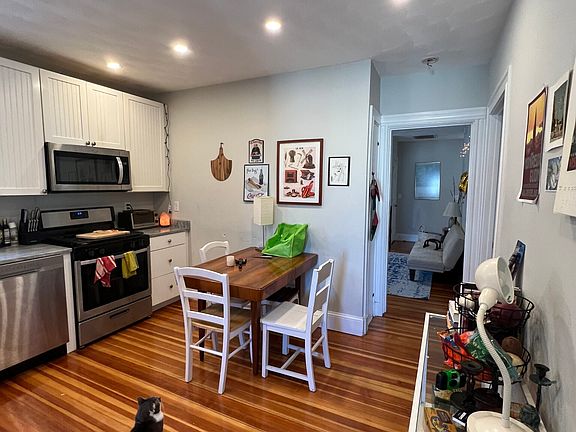 Available September 1st, 2025 Davis Square Closest trains = Davis Square/Porter Square (Red Line T) 4 bed/2 bath (third floor) Eat-in-kitchen with stainless-steel appliances, granite counters, modern cabinets In-unit laundry Modern tiled bathrooms Hardwood floors throughout Central heating and AC w/ NEST thermostat Private back deck Enclosed front porch Yard Street parking with City permit Off-street parking available to rent 1 year