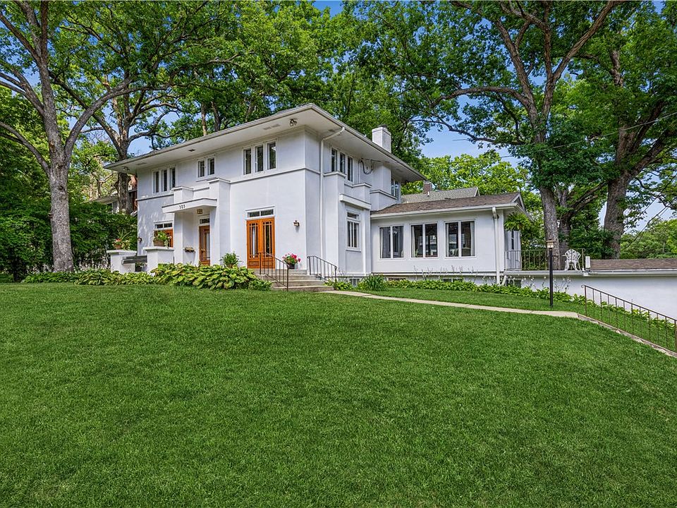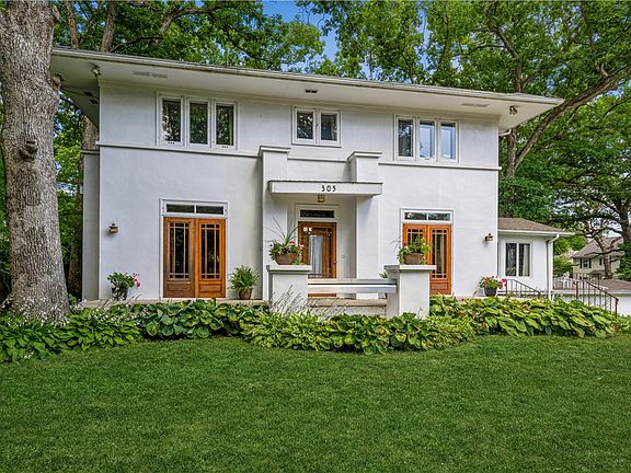 Ignite your passion with this classic Prairie-style two-story residence located South of Grand. This gleaming house on a hill, built in 1912, was known as the “Dewey House” in publications & has been lovingly restored to its original beauty. Throughout the 2,459 SF of this 4BR/2BA home, the timeless style of architecture was maintained. The main level includes a large living room, formal dining, an updated kitchen, family room, & ½ bath. The custom kitchen features full-height Shaker cabinets, granite counters, & SS appliances. You’ll love the central stairwell library, stone fireplace, window seats, built-ins, & double French doors which lead to an impressive front patio. Natural light fills the family room which includes a vaulted ceiling, brick accents, & a charming balcony. Upstairs, a hallway connects to 4 bedrooms & a full bathroom. Hardwood oak floors & wide trim run throughout & each room has expansive windows. Downstairs, the waterproofed basement offers tons of potential with tall ceilings, daylight windows, laundry, & bathroom stub-in. The 2-car garage is tandem-style with entry from a quiet street. Renovations include replacement of the foundation, HVAC system, plaster to drywall, & whole-house wiring/insulation/plumbing. The exterior is low-maintenance stucco. Mature trees & stately homes will be your views plus Greenwood Park, the Des Moines Art Center, & Salisbury House are all within walking distance. Unique Airbnb opportunity!