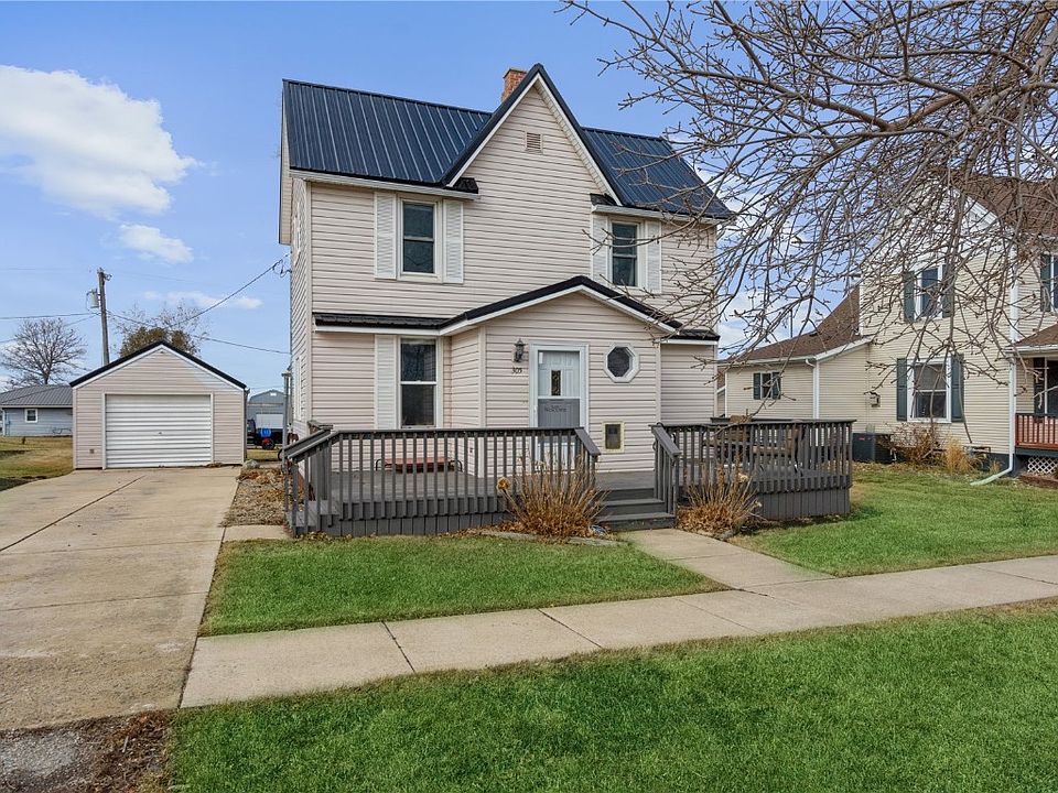 Great 1 3/4 story in the quaint community of Keystone! Enjoy vinyl siding, metal roof that's just a couple of years old, 3 bedrooms & a charming lot. Lots of areas to relax with a front living room plus a bright & cheery sunroom at the back of the home that leads to a nice size deck with rear yard access! Kitchen/dining combo, 1st floor laundry, main level bedroom too! Back drop zone area & a front drop zone space too, also a front deck on the home! Upstairs are 2 additional bedrooms, updated windows throughout, 2018 water heater & newer furnace & AC. 1 car detached garage with extra parking spaces in the driveway. Set up your showing today!