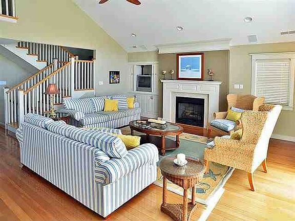 Beautiful and elegant South Avalon Nantucket-style home near both the beach and bay. The first floor features a family room with wet bar, 2 bedrooms, and 1and a half baths. The second floor has a spacious living room with cathedral ceiling, fireplace, dining room with built-in custom cabinetry, a kitchen that willsatisfy even a gourmet cook, laundry room, 2 bedrooms and 1.5 baths. The third floor is the large master suite with a jacuzzi and a private deck to enjoy the bay views. The house features Brazilian cherry wood floor, central vac,wine cooler, security system, 5 decks and much more. A perfect family home for entertaining, barbecues, and summer fun. Just a short walk to the beach,bay, restaurants, recreational field and tennis courts.