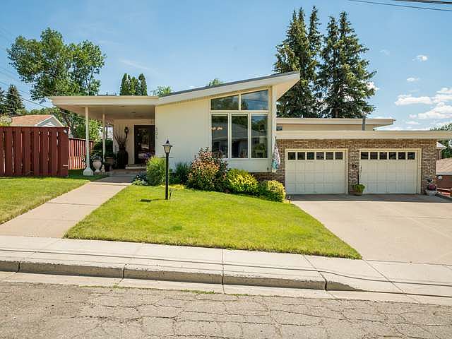 SPACE! CHARACTER! CUSTOM ARCHITECTURE! AND MUCH MUCH MORE!! This hidden gem has over 2,000 sqft on the main floor and was built by an amazing architect! As you enter from the double front doors you will find a cozy sitting room w/ gas fire place, teak wood flooring, semi open kitchen/dining room, kitchen w/ custom teak cabinetry, double ovens, breakfast bar w/ brick accent, informal dining area, huge living room w/ amazing windows, spacious retro laundry area, amazing master suite w/ walk through bathroom that has granite countertops, dual sinks, tile shower, built in cabinetry, and a second bedroom. The lower level offers an additional spacious bedroom, a non-conforming bedroom or office/den, 3/4 bathroom and a huge unfinished storage area! The exterior offers a covered and private brick patio, beautifully landscaped yard w/ sprinkler system. Other updates include newer furnace and gas line for grill!! The double garage is finished w/ floor drain, heater & water! Don't miss it!