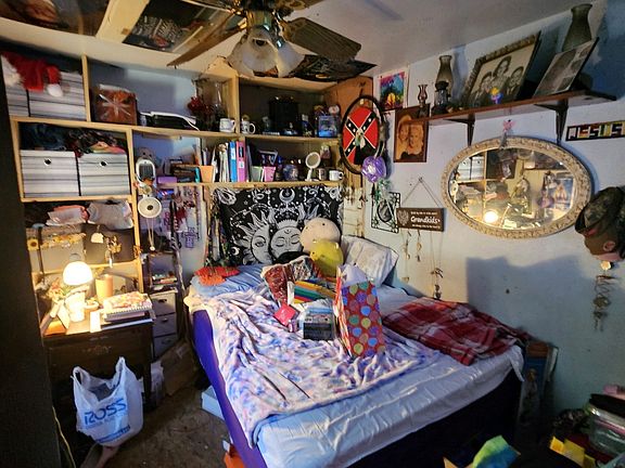 Investment opportunity, bring all offers! 3 BR 1 bath - The seller took the closets out of 2 of the 3 bedrooms and built shelves in their place. The metal roof is just 9 years old. House needs a lot of work to include all new floors and subfloors. Selling AS IS.