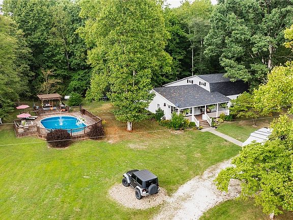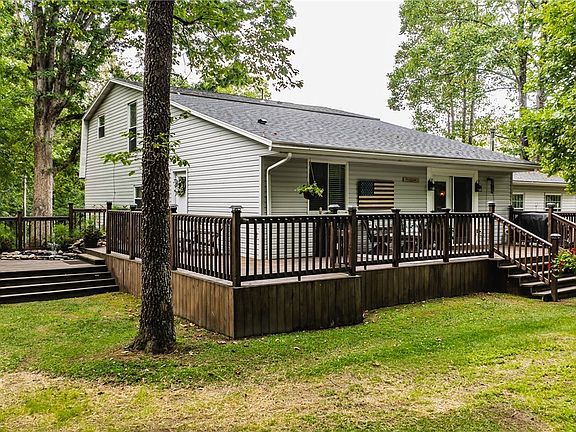 Looking for a peaceful country retreat? This spacious 4-bedroom, 3-bath home, offering 3,000 sqft of living space, is set on 3.29 acres and provides plenty of privacy on a dead-end street. Relax on the covered front porch and enjoy the beauty of nature. The main floor features a master suite with a full bathroom, walk-in closet, and patio doors leading to a wrap-around deck with a tranquil water feature. The open floor plan seamlessly connects the kitchen to the large great room and offering beautiful woodland views. The main floor also includes another full bathroom, an office, a sunroom, a study, and a laundry room. The study could serve as a fifth bedroom or a formal dining room. Upstairs, you'll find three large bedrooms and a third bathroom. One of these bedrooms even boasts four built-in bunk beds! The property includes a stunning 16x32 pool with a wrap-around deck, trails through the woods for bird watching and wildlife sightings, a 22x25 outbuilding, a 5x5 shed, and a charming chicken coop for fresh eggs. The family has created many wonderful memories around the fire pit, in the pool, riding four-wheelers, and walking through the woods, and they know you will too. Brand-new roof in 2024, furnace 10 yrs old, AC unit 5 yrs old, hot water tank 2 yrs old. There is also a wood-burning stove in the great room and a propane stove in the master bedroom.
