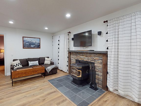 Turnkey, south facing, one bedroom, one bathroom, corner unit condominium located in town, close to restaurants and shopping. This condominium features new vinyl wood style flooring in the living area, kitchen and dining area, brand new slider doors and windows, pellet stove fireplace, gourmet style kitchen and granite countertops, spacious bedroom and a “in unit” stackable washer/dryer. Sold mostly furnished. Common area amenities include a tennis court, pool and jacuzzi. The town’s shuttle system is located nearby.