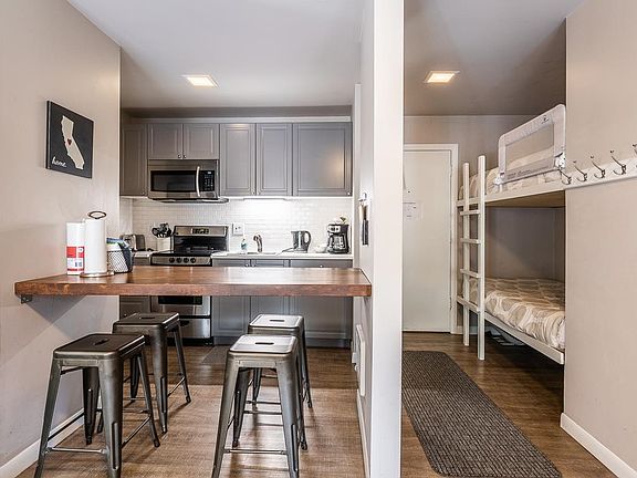 Completely Remodeled, Charming, and in an Awesome Location! Luxury waterproof vinyl plank flooring, stainless steel appliances, cultured marble counters, private ski locker, and the list goes on. To be sold fully furnished. This centrally located studio condo with built in bunks sits in a popular and well maintained complex with tons of parking just a quick walk to Old Mammoth Rd. restaurants, entertainment, and bars. The dual sliders exit the living area to a private balcony looking off into the pines. Easy (and flat) walk to get to the trolley direct to Eagle Express and/or The Village. You really don't need to drive anywhere during your stay. This condo is a popular rental with a great rental history. One of the lowest HOA fees in all of Mammoth. Complex includes a pool, jacuzzi, and even a tennis court. Best priced condo in Mammoth with tons to offer, and it won't last long!