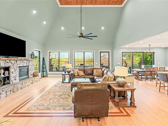 Gorgeous waterfront home in the sought-after gated community of Heron Bay. Recently renovated main floor with fabulous refinished hardwoods, a stunning kitchen remodel with high-end appliances, beautiful countertops, tile backsplash, gorgeous cabinetry, coffee station, eye-catching hardware & light fixtures. Recent interior paint, Pella windows and doors- including bi-fold accordion doors that brings the outside in! The living room features an updated stone fireplace & new stair balusters. Incredible natural light & lake views. Main floor features a bedroom and full bath. Two stairwells lead to the second story, which boasts a large primary suite with large bath, bunk room, office used as 4th bedroom, recent bathroom off bunk room with tile shower! The basement features a kitchenette, game room, den and second bunk room with built-in beds. Room for many guests. This home has incredible outdoor living- huge main floor deck & basement patio. Easy walk to the dock! Spacious 3 car garage!