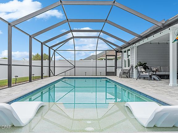 This property has sold! Discover similar listings by reaching out to us for an updated list of available properties that match your preferences. Unlike new builds, the fence, gutters and window treatments are all INCLUDED in the price...and there is no road planned behind this home :). Featuring FIVE bedrooms and THREE full bathrooms, this upgraded Southern Coastal ''Heron'' model in Breakfast Point is impressive inside and out. Starting outside, there is plenty of room out front for parking AND storage since you have a THREE-CAR GARAGE and a massive driveway. Out back, you can enjoy a private oasis since there are NO NEIGHBORS DIRECTLY BEHIND you. The beautiful SCREENED-IN POOL is HEATED with a nice tanning shelf and there is plenty of deck area and patio to enjoy and entertain outside...there is even a cable hook up for your OUTDOOR TV! Inside is just as stunning. Immediately upon entering, to your right is one of the bedrooms and a full bathroom. If you walk further into this beautiful home, there is ANOTHER BEDROOM on your right (currently being used as an office). The OPEN CONCEPT is in full effect once you enter the main living space with dining, living and kitchen ALL CONNECTED offering BEAUTIFUL VIEWS of the incredible outdoor spaces. In the kitchen, enjoy pretty stainless steel appliances (dishwasher and fridge are new in 2023), NEW COUNTERTOPS/BACKSPLASH, a cooktop and hood and even an ADDITIONAL BAR off the dining area with a wine fridge and more counter space. Two additional bedrooms share another full bathroom around the corner from the kitchen...and then there is the master. The master suite is located away from all of the other bedrooms and overlooks the pool and greenspace. The roomy master bathroom includes double vanities, a beautiful shower and an amazing, CUSTOM WALK-IN CLOSET that is loaded with built-in shelving. I can't say enough about the condition on this home...one of the sellers is a builder and has METICULOUSLY MAINTAINED the entire residence. This wonderful home is located in the Breakfast Point community in Panama City Beach. Residents enjoy numerous parks, a playground, connection to Gayle's Trails, easy access to Breakfast Point Academy and Arnold High School (walkable) and convenient access to multiple businesses right at the front of the neighborhood. Do yourself a favor and see this fantastic home in person.