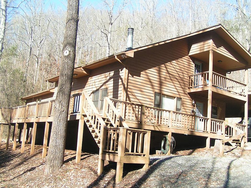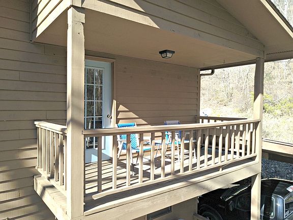 UNIQUE HOUSE WITH INTERESTING DESIGN AND FUNCTIONALITY. UPSTAIRS FEATURES 2 ROOMS WITH JACK AND JILL BATH. EITHER CAN BE A BEDROOM AND THE OTHER A HOME OFFICE/HOBBY/CRAFT ROOM. ONE FEATURES A PRIVATE COVERED DECK AND STUDIO KITCHEN. BOTH ARE SERVICED BY A BALCONY OVERLOOKING THE HUGE GREAT ROOM/LIVING ROOM WITH CATHEDRAL CEILING.MAIN LEVEL FEATURES THE GREAT ROOM, VERY CONVENIENT KITCHEN. A TILED BATH AND A ROOMY 2ND BEDROOM. GET AWAY FROM IT ALL BY STEPPING UP 2 STEPS INTO THE 384 SF MASTER SUITE WITH WALL OF CUSTOM BOOK SHELVES AND CATHEDRAL CEILING.