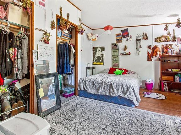 Cute 4 bedroom, 2 bath manufactured home in Happy Valley Park in Nampa. This fenced lot is surrounded by mature trees and offers garden space and concrete patio for entertaining or relaxing. This home has 1,782 sq ft of comfortable living space. Galley style kitchen with stainless refrigerator and breakfast bar overlooking the dining room, plus plenty of storage and counterspace. Master suite with dual vanities. Don't miss the opportunity to make this home your own!