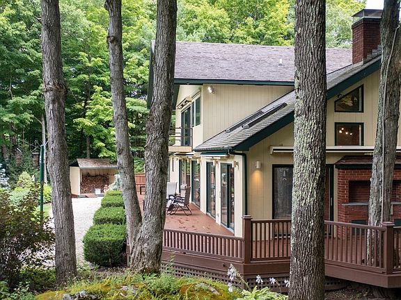 Peacefully relax on your back deck and enjoy the views of Mount Equinox from your own 28 acre oasis privately located off Manchester West Road. This unique property has everything you have been looking for in Vermont. The property features a main residence with air conditioning, 4 bedrooms; one being a first floor suite and a second floor primary with updated bath and walk in closet, a great room, two fireplaces, covered porch and back deck with outdoor grilling area. Property includes an amazing detached 1 bedroom guest suite with multi bay garage space. You can enjoy a network of meticulous trails and manicured grounds, numerous garages and all with the convenience of Manchester Dorset and the Mountains. Snowmobile, hike, ski or ATV right out your back door to the trails. There is a cleared private gazebo area with an oversized fire pit. The expansive yard has a clubhouse, basketball/ pickle ball court, shooting rage and bocce ball court. Acreage also has access off of Three Maple Drive and can be further subdivided to suit the buyers needs in many different ways. Property has m any additional multi bay garages that can fulfill many uses especially for a car enthusiast. A must see-- not often does property with so much to offer and potential come around in Manchester.